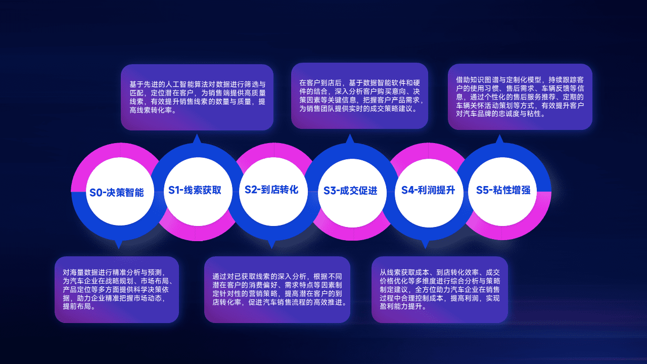 通过拓宽潜在客户来源、、、优化线索分配并提高到店转化率,,,以增强销售效率。。同时,,,,利用线索数据不断优化分析模型,,,有效提升转化率,,,扩大营销影响力。。。